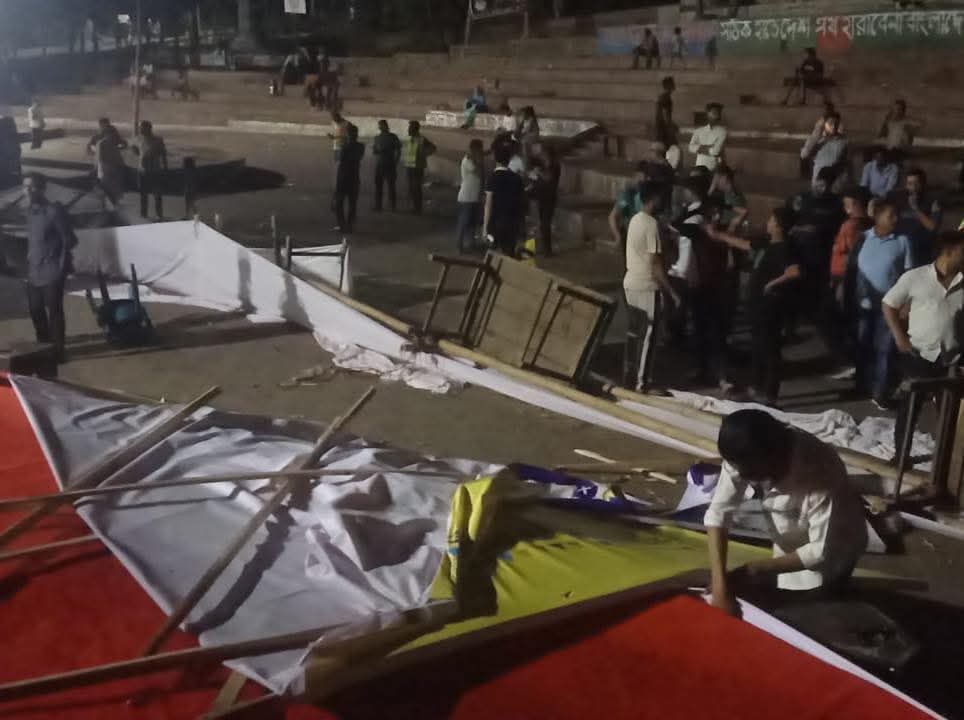 চট্টগ্রামে নববর্ষ উদযাপন মঞ্চ ভাঙচুরে আটক-৬জন।আগামীকাল ডিসি হিলের অনুষ্ঠান বাতিল। দেশে অস্থিরতা সৃষ্টিতে আইন শৃংখলা পরিস্থিতি বিপন্ন বিপর্যয় নানা ষড়যন্ত্রে দুষ্কৃতিকারী দুর্বৃত্তরা পূর্ব পরিকল্পিত হামলা ভাঙচুর চালায়। প্রশাসনের সক্রিয়তাই সঙ্গে সঙ্গে পরিস্থিতির স্বাভাবিক ও নিয়ন্ত্রণে আনতে সক্ষম হয়। ঘটনার সাথে জড়িতরা আটক হয় প্রশাসনের হাতে। জিজ্ঞাসাবাদ চলছে। দেশের শান্তিপূর্ণ জনজীবনে অস্থিরতা। সংখ্যালঘু ইস্যুতে চলছে নানা ষড়যন্ত্র। স্বাধীনমত প্রকাশ সকল বর্ণ ধর্ম মত শ্রেণীপেশা মানুষের শান্তিপূর্ণ নিরাপত্তায় সুস্থ সংস্কৃতি চর্চা লালন ধারণ পালনে বাঁধা ভাঙচুর অনভিপ্রেত অনাকাঙ্ক্ষিত। যা নিরাপদ জীবনের কোন সুস্থ সমাজ দেশ রাষ্ট্রের কাম্য নয়।