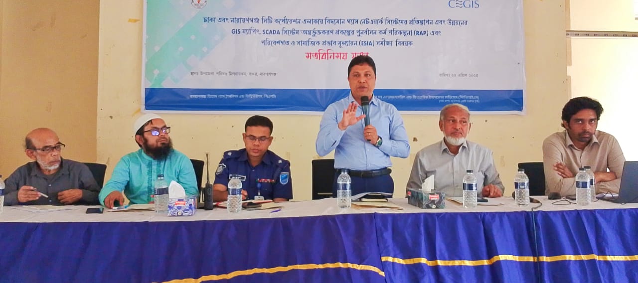 হিফজুর রহমান সঞ্চালনায় ঢাকা এবং নারায়ণগঞ্জ সিটি কর্পোরেশন এলাকায় বিদ্যমান গ্যাস নেটওয়ার্ক সিস্টেমের প্রতিস্থাপন, সরবরাহ বৃদ্ধি, গ্যাসের নিন্ম চাপ পরিস্থিতি উন্নত করা গ্যাস লিকেজ প্রতিরোধ এবং উন্নয়নের (জিআইএস) ম্যাপিং এবং (এসসিএডিএ) সিস্টেমের অন্তর্ভুক্ত করণ প্রকল্পের পুনর্বাসন কর্মপরিকল্পনা (আরএপি) এবং পরিবেশগত সামাজিক প্রভাব মুল্যায়ন (এসআইএ) সমীক্ষা বিষয়ক অংশীজনদের নিয়ে মতবিনিময় সভা অনুষ্ঠিত হয়েছে।