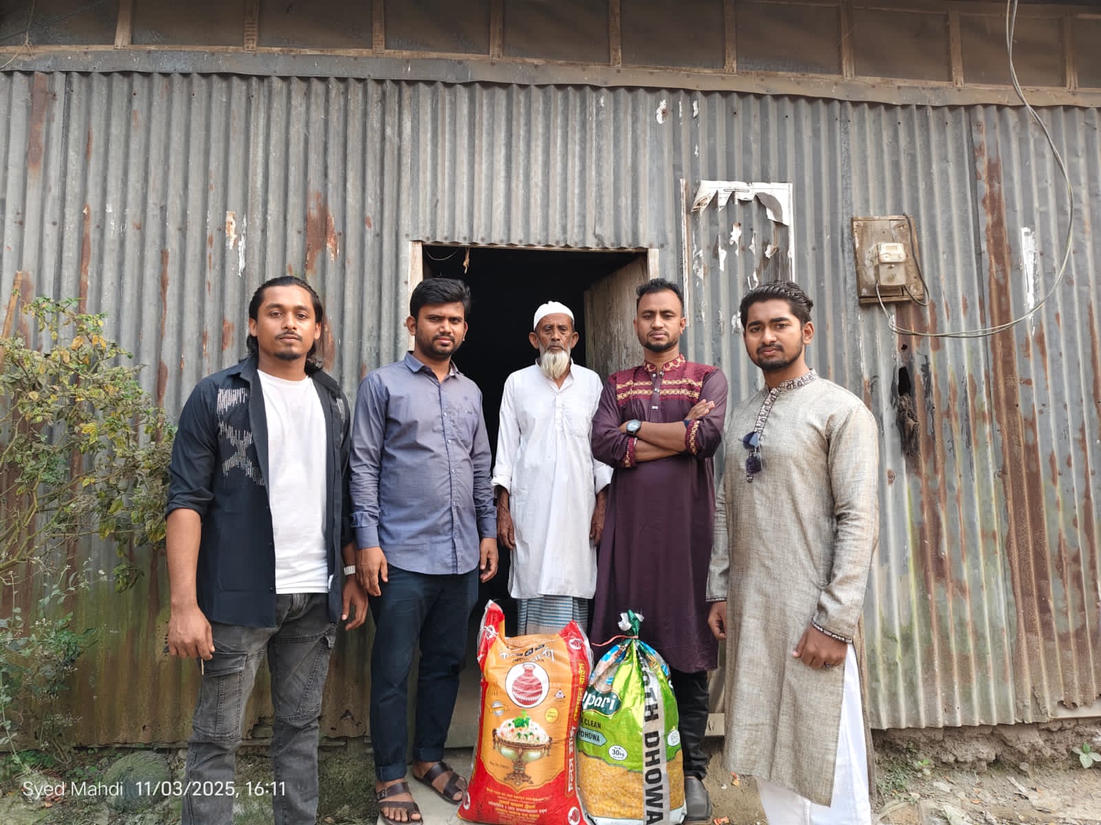 হবিগঞ্জের মাধবপুর উপজেলার ছাতিয়াইন ইউনিয়নের শিমুলঘর গ্রামের শেখের বাড়ির শামীম পেশায় একজন শ্রমিক। স্বামীকে হারিয়ে অসহায় প্রায় শামিমের স্ত্রী অভাব অনটনের দিনাতিপাত করছে। তবে শামিমের পরিবারের খুঁজ খবর নিয়মিত রাখছে মাধবপুরের ছাত্র নেতা সৈয়দ মেহেদী হাসান। এর ই ধারাবাহিকতায় ১১ মার্চ বৈষম্যবিরোধী ছাত্র আন্দোলনের ছাত্রনেতাদের একটি টিম পবিত্র ঈদুল ফিতর উপলক্ষ্যে শামিমের পরিবারের কাছে প্রায় ২ মাসের খাবার সহ ঈদ সামগ্রী তুলে দেন। শামিমের পক্ষে এ সব পণ্যসামগ্রী গ্রহন করেন তার চাচা মলু মিয়া।