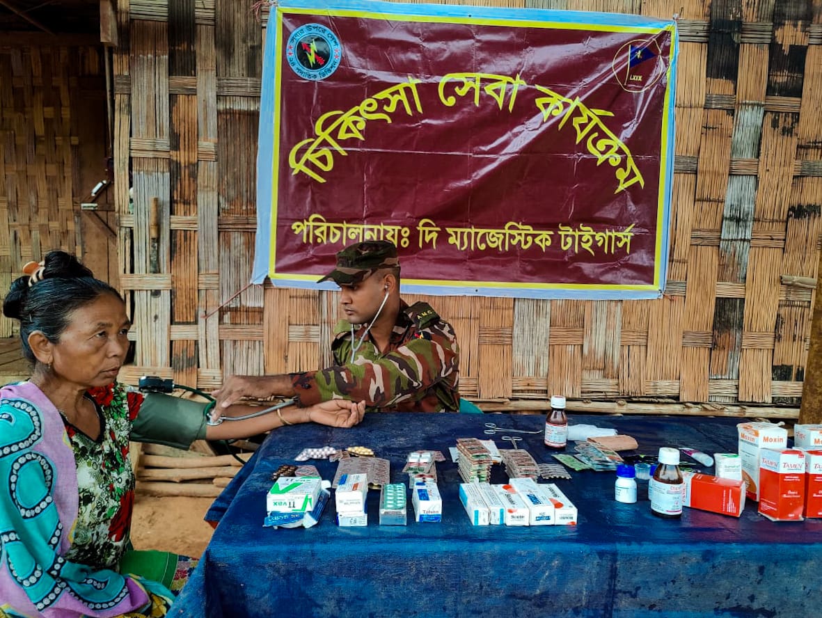 গতকাল, বৃহস্পতিবার (১০ এপ্রিল) বিকেল ১৬৩০ ঘটিকায় ১৬ ইস্ট বেঙ্গল রেজিমেন্টের বাকলাই পাড়া সাবজোনের অন্তর্গত তাজিংডং চূড়ার পাদদেশে শেরকুর পাড়ায় মোট ৬৩ জনের( পুরুষ -১১, মহিলা -২৯, শিশু -২৩) মাঝে মেডিক্যাল ক্যাম্পিং এবং আর্থিক সহায়তা প্রদান করা হয়। দি ম্যাজেস্টিক টাইগার্স – এর অধিনায়কের পক্ষ হতে পাড়াবাসীর উন্নয়নের জন্য নগদ অর্থ প্রদান এবং মেডিকেল ক্যাম্পিং করেন বাকলাই পাড়া সেনা সাবজোন কমান্ডার।