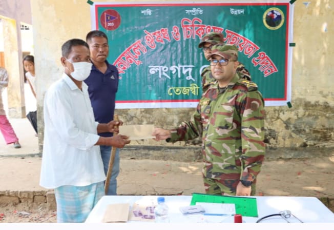 লংগদু সেনা জোন কতৃক বিনামূল্যে চিকিৎসা,ঔষধ ও নগদ অর্থ বিতরণ