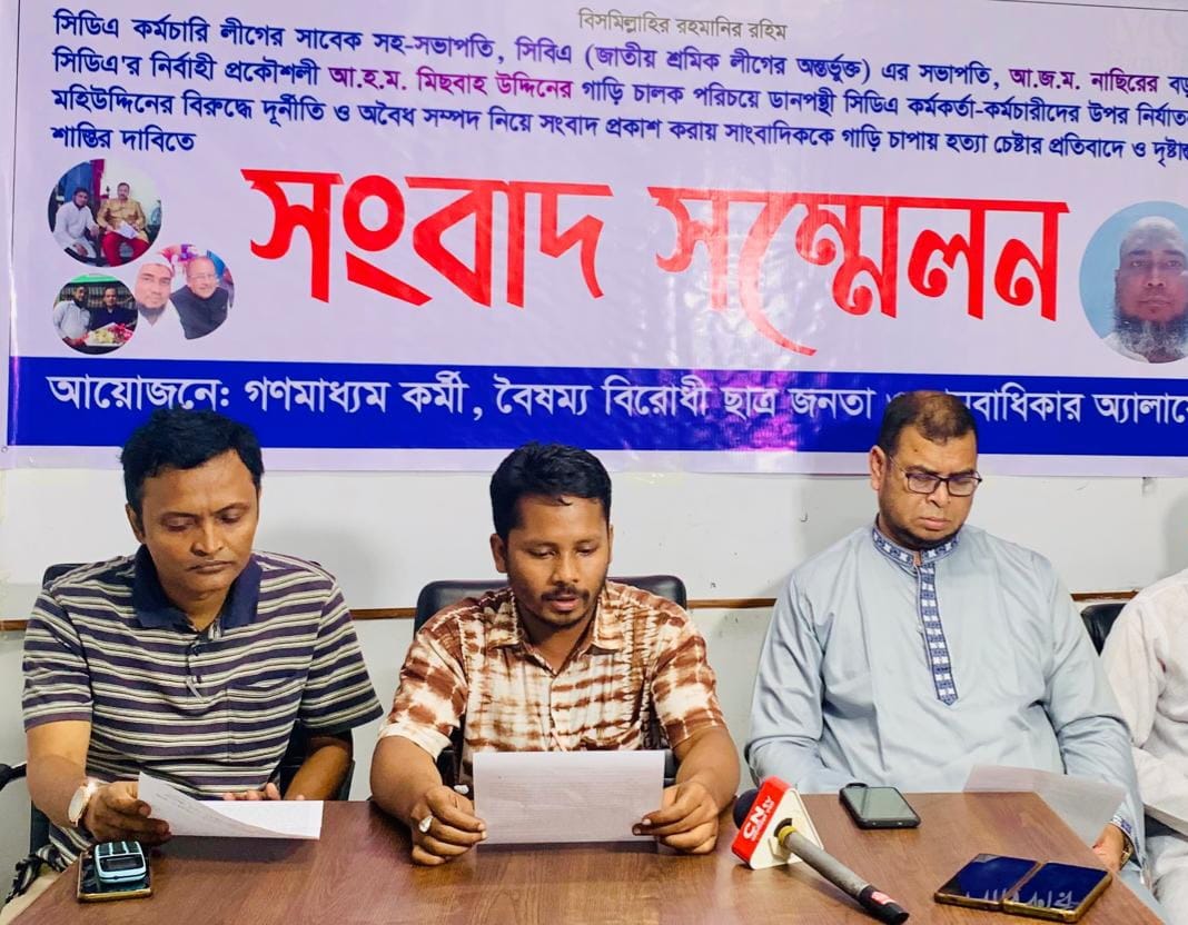 লিখিত বক্তব্যে ভুক্তভোগী সাংবাদিক গাজী গোফরান বলেন, আমি নিজে একজন সংবাদকর্মী হয়েও আজ আপনাদের সামনে উপস্থিত হলাম সিডিএ’র একজন দূর্নীতিবাজ কর্মচারীর রোষানল থেকে নিজেকে রক্ষা করার জন্য। এই দূর্নীতিবাজ কর্মচারী মহিউদ্দিন বিগত আওয়ামী স্বৈরশাসকের দোসর হলেও এখনো বহাল তবিয়তে রয়েছেন। তার বিরুদ্ধে সংবাদ প্রকাশ করাই আমার জন্য কাল হয়ে দাঁড়িয়েছে। তার বিরুদ্ধে সংবাদ প্রকাশের পর থেকে অব্যাহত মামলা-হামলার হুমকি এবং সর্বশেষ গাড়িচাপায় হত্যা চেষ্টা আমার জীবনকে বিষিয়ে তুলেছে। পরিবার পরিজন নিয়ে চরম নিরাপত্তাহীনতায় দিনযাপন করতেছি।