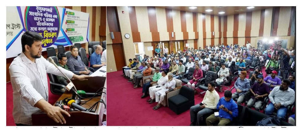 উল্লেখ্য, ৩৭৪ জন সাংবাদিক ও সাংবাদিক পরিবারের মধ্যে ১ কোটি ৯৩ লাখ ৯০ হাজার টাকার অনুদানের চেক দেওয়া হয়। এর মধ্যে মৃত্যুবরণকারী সাংবাদিক পরিবারের সংখ্যা ১১টি। এছাড়া, অনুদানপ্রাপ্তদের মধ্যে বিভিন্ন জটিল রোগে আক্রান্ত সাংবাদিক রয়েছেন ১৯২ জন।